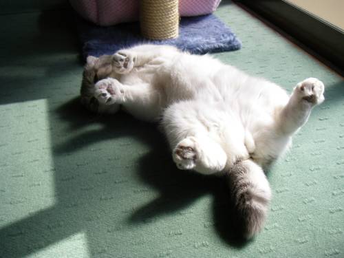 ラグドールの男の子。甘えん坊。2007年11月から肥大型心筋症と、2016年秋から腎不全も患いながら長生きしてくれました。心臓病との付き合いは長かったですが長い年数を普通に元気に過ごして2019年3月、17歳半までがんばって虹の橋を渡りました。
