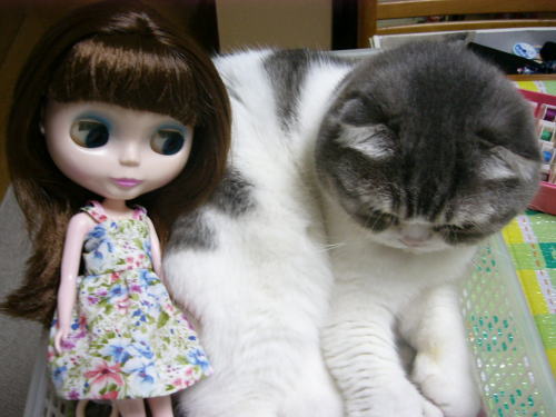 おおお、特に怒る気配もなくじっと、ときどきプフプフ、チェックを入れて、後は無視して寝てました。いい写真がとれたわ。人形と一緒にとるとまた違った楽しさがあることにきづきました!