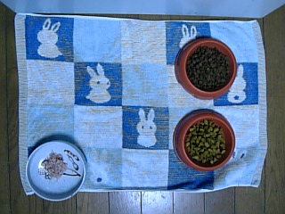 フェイフェイは昨日よりもしっかりたべてくれたぁ。でも一般的な1回の量の4分の1。
