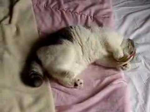 母が途中で「いいよ遊んでて〜」といってキャットニップをフェイフェイの上においてます。