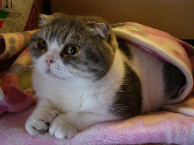 フェイはこちらが少しでも動くと即座に文句を言いながらお布団からでてしまうから・・。文句を言いながらというのがミソ。叫ぶような出も大きくない声で「きにゃあぁあ!くるぁ!んくう!」とかなんとか・・。なのでお布団にはいってもらえたラッキーな人は微動だにせず布団もかけすぎず、とにかく動かないこと。